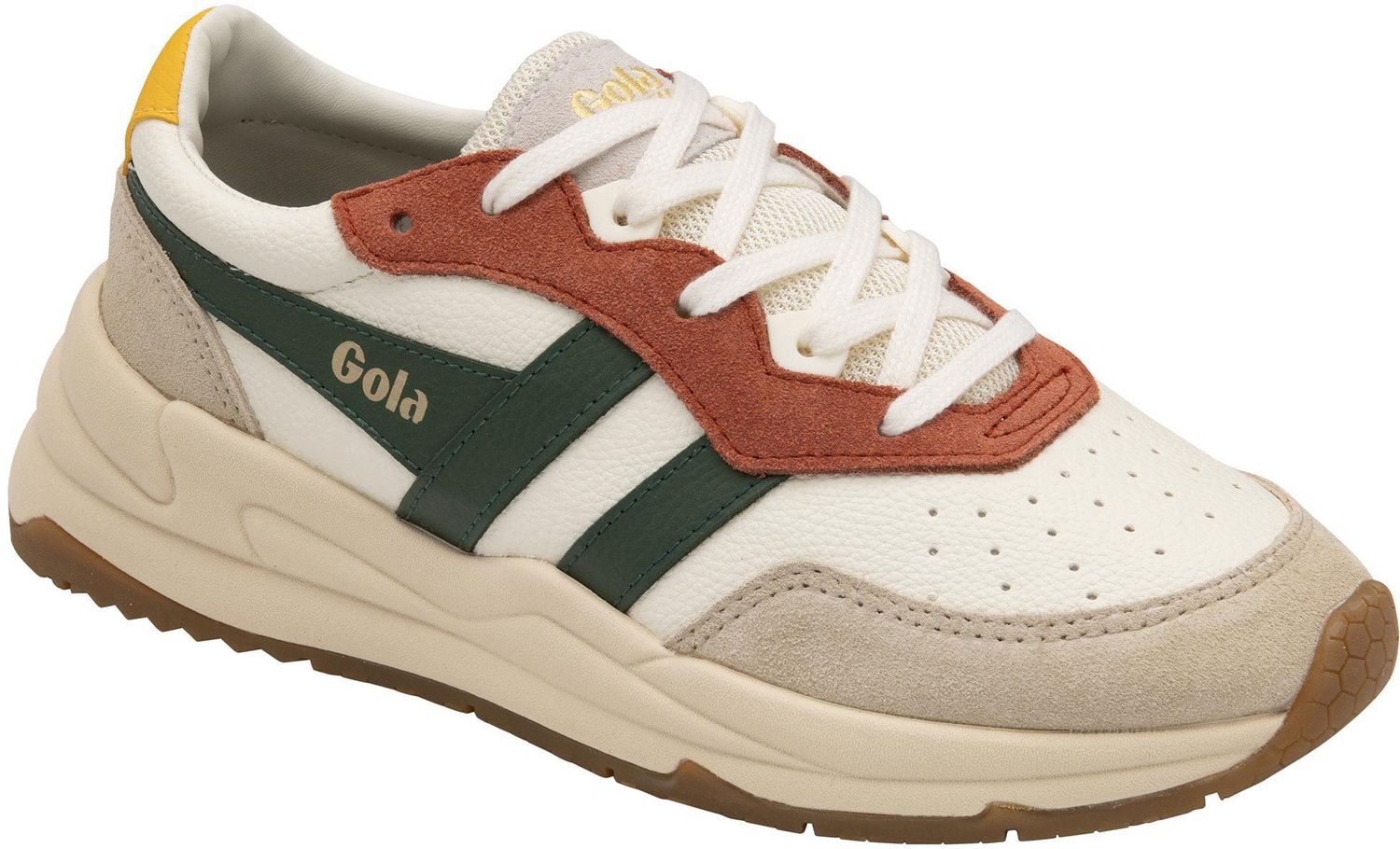 Womens Gola Classics Gola Saturn Quadrant Recycled Pu Trainer In Off White/Wheat/Evergreen/Sun | Soletrader