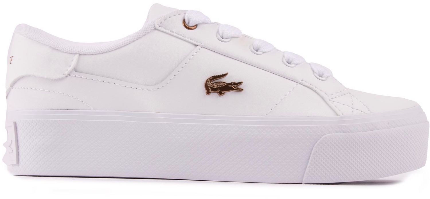 Make your mark, elevate your style and add some fashion-forward Lacoste lifestyle to your casual wardrobe in these updated Ziane platform sneakers. They are bigger and better than ever, featuring a premium leather upper, bronze metal croc logo, thick rubber platform sole and cushioning ortholite® insole for added comfort.