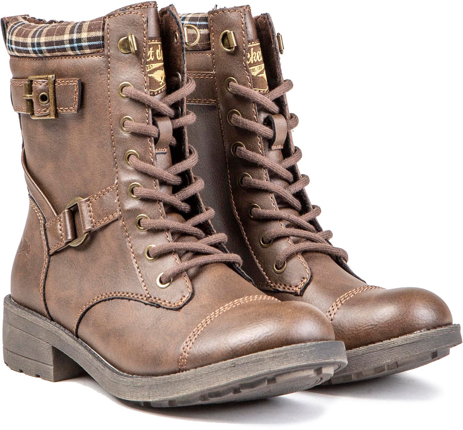 The new Rocket Dog Thunder women's boot is a fresh take on military style boots. Featuring a brown upper and stylish buckle detail, these boots will look great teamed with jeans and jumper.