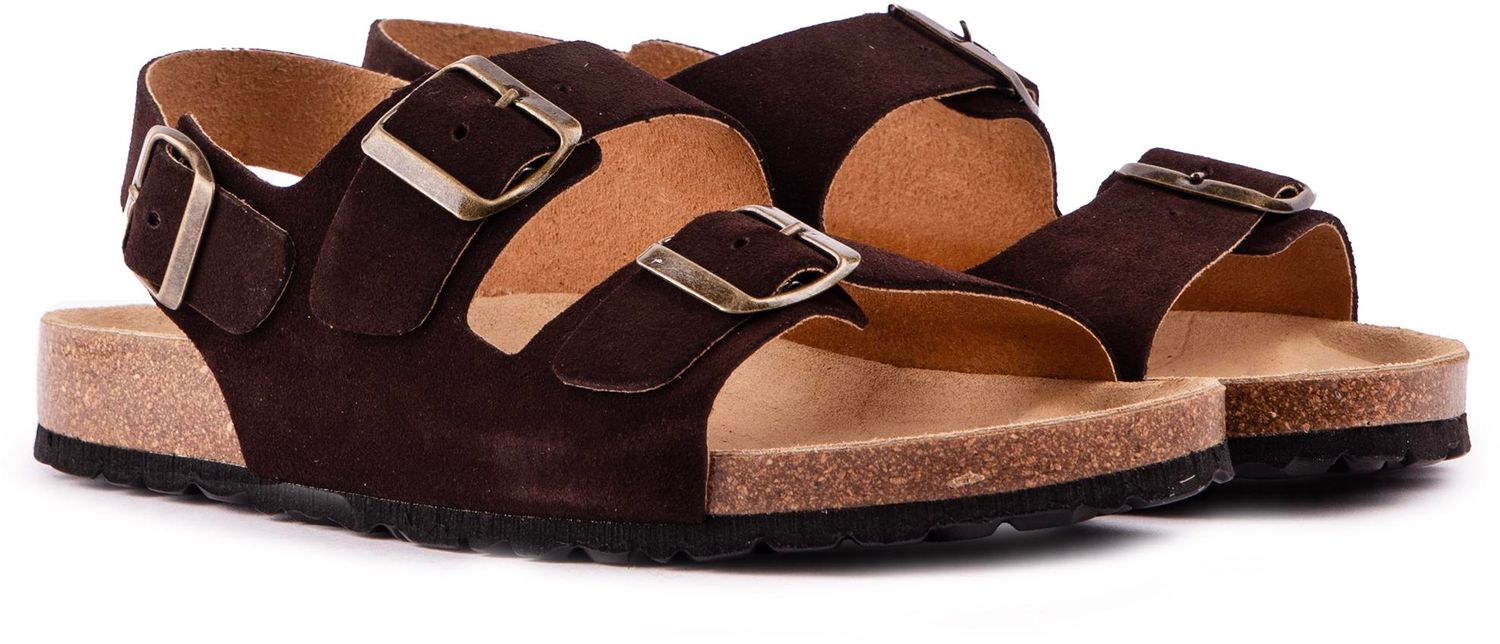 Embrace your favourite summer wear in style and comfort, wearing the Oxley men's footbed sandals from SOLE. The classically stylish slip-on in brown boasts a high-quality suede triple-strap design with adjustable buckles and a moulded footbed for the perfect fit and an easy-going, breezy look.