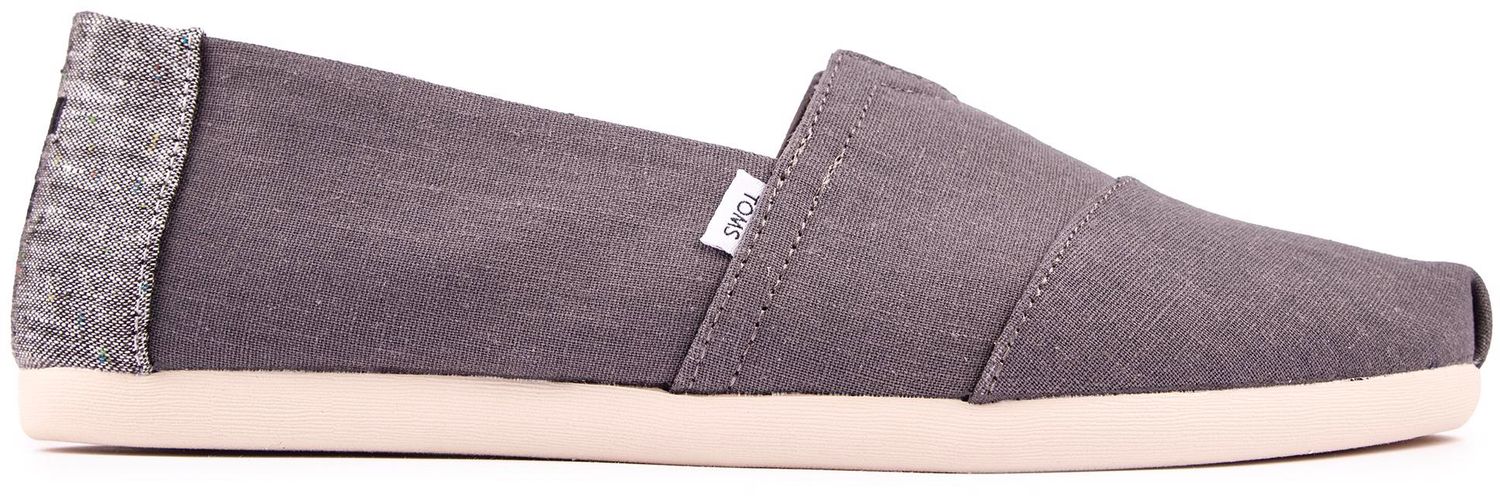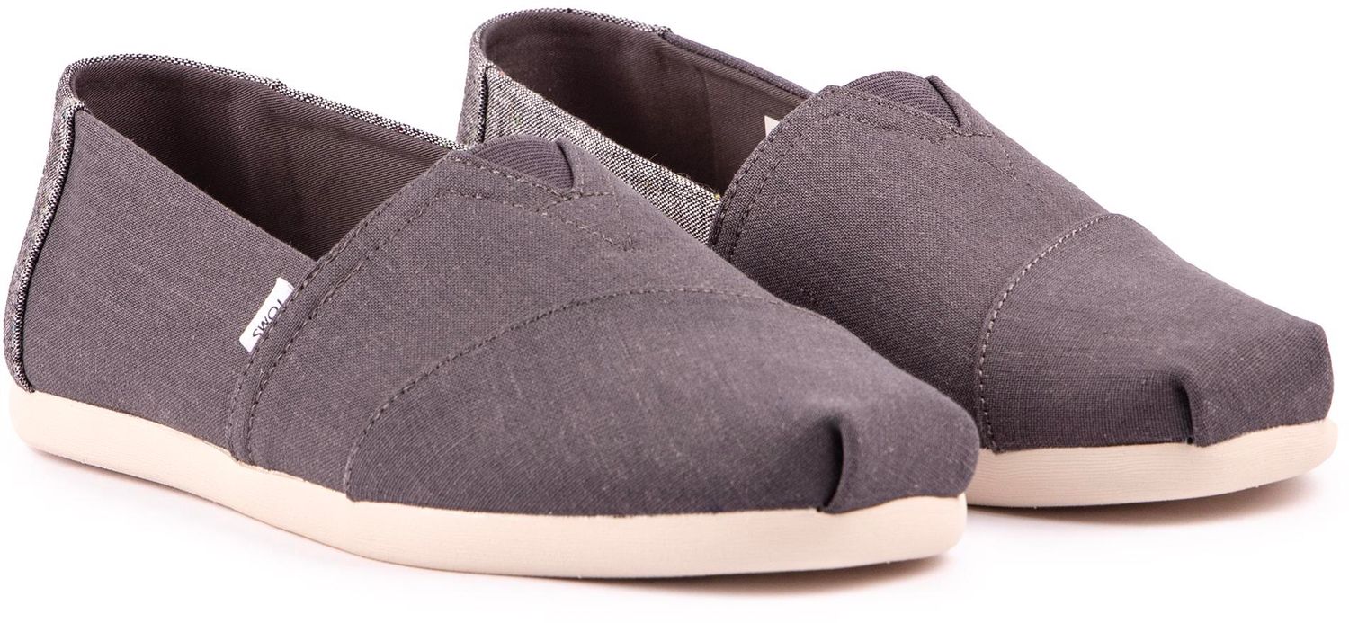 Keep your feet cool. casual and in style with the distinctive TOMS Alpargata men's plimsolls featuring a durable. grey canvas upper with signature branding. The elasticated gusset. Ortholite foam insole and lightweight construction ensure comfortable wear all day long.